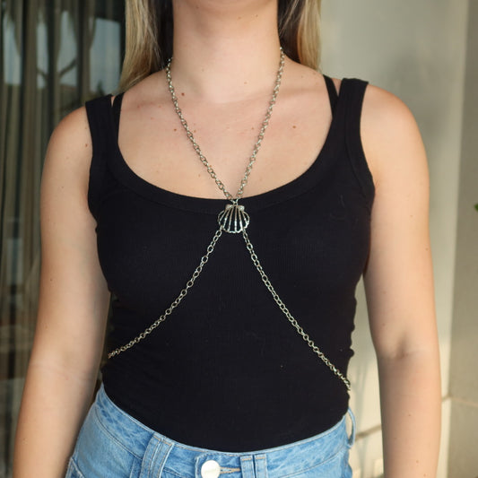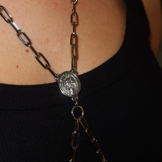 Bolsa Katrin Aqua com Alças de Corrente e Couro Marrom