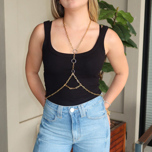 Bolsa Katrin Rosa com Alças de Corrente e Couro Rose Gold