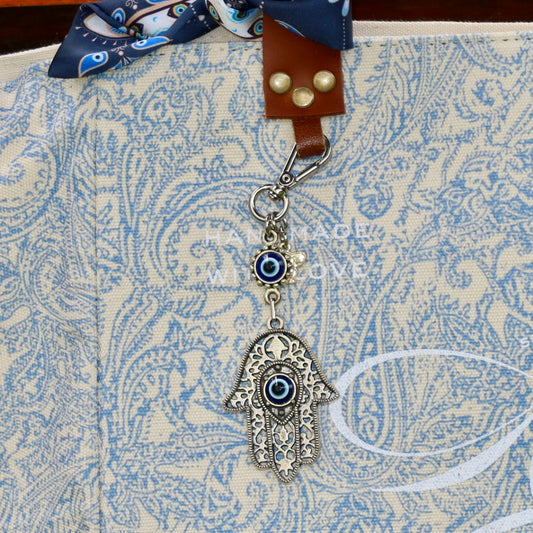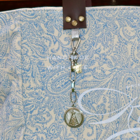 Bolsa Katrin Arabesque Azul com Alças de Corrente e Couro Marrom