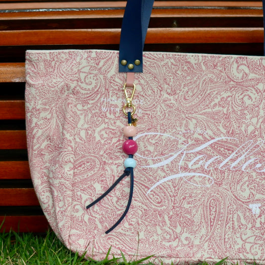 Bolsa Nuna Arabesque Rosa com Alças de Couro Marinho