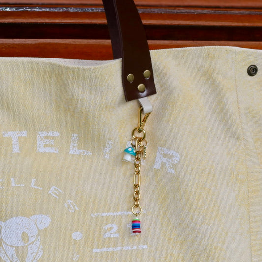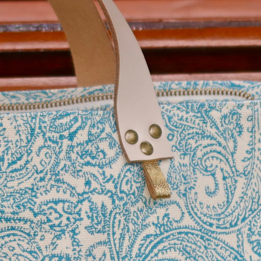 Bolsa Wallow Arabesque Turquesa com Alça de Couro Marrom Escuro com Zíper