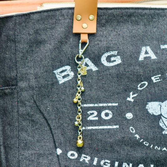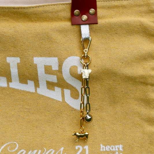 Bolsa Wallow Jeans Preto com Alça de Couro Caramelo com Zíper