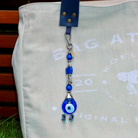 Bolsa Wallow Arabesque Azul com Alça de Couro Prata