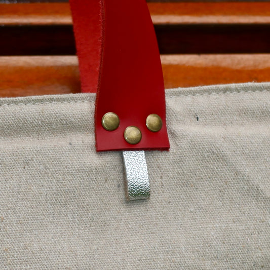Bolsa Wallow Cinza com Alça de Couro Vermelha com Zíper