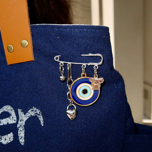 Bolsa Wallow Arabesque Azul com Alça de Couro Marrom