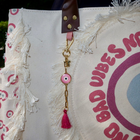 Bolsa Wallow Good Vibes Rosa com Alça de Couro Marrom Escuro com Zíper