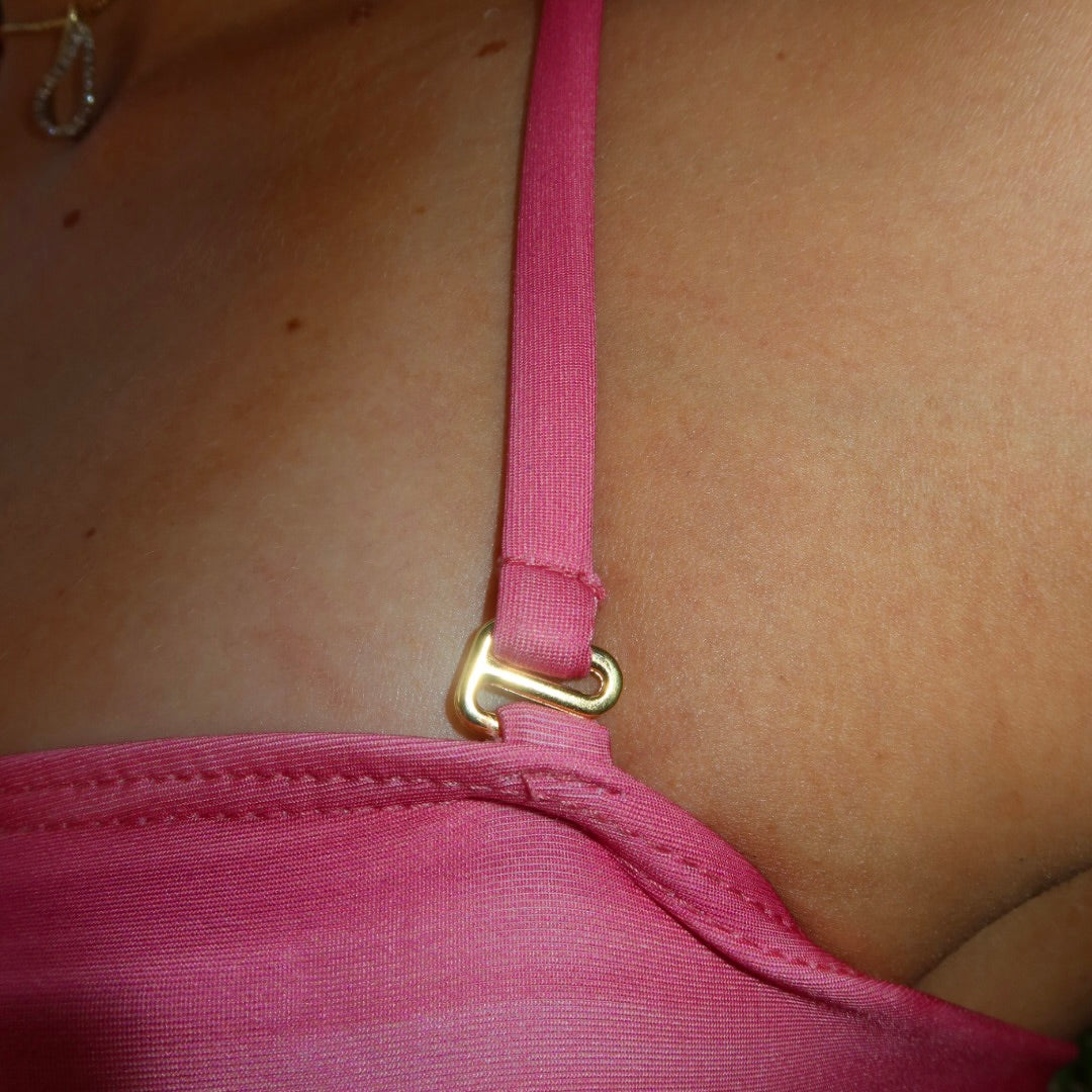Contém também uma corda que pode ser enganchada na parte superior do biquíni, caso deseje prendê-lo em volta do pescoço, ou usá-lo cruzado na frente.