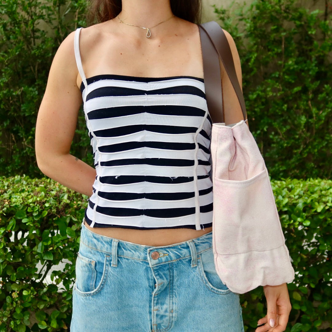 - Se necessário, lave na mão usando um pano com sabão neutro e água fria, sem molhar as alças e sem esfregar o tecido.