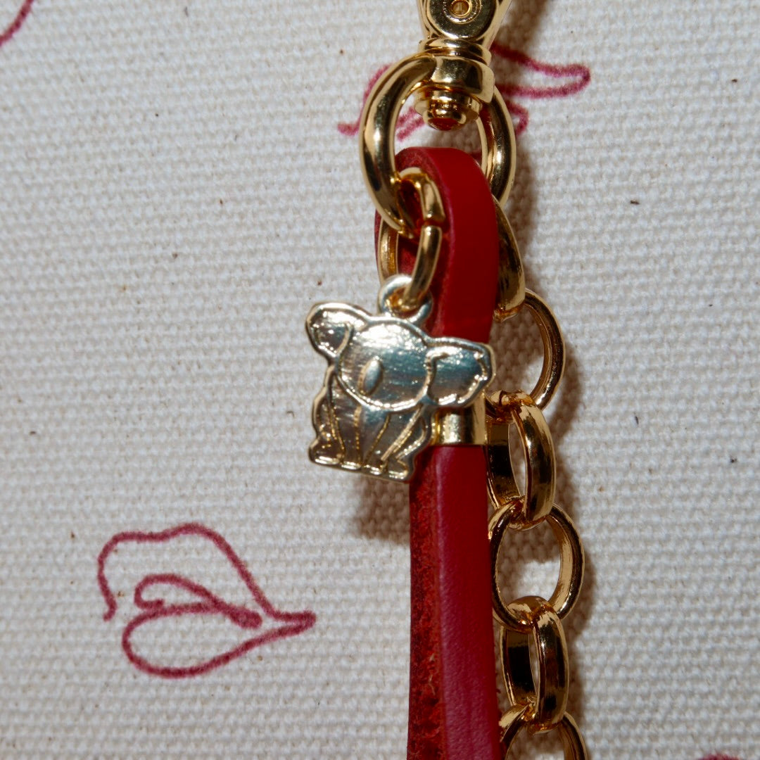 Bolsa média em lona de algodão estilo tote no modelo Nuna na estampa be beijinho em cru e alças de couro legítimo em marrom escuro.