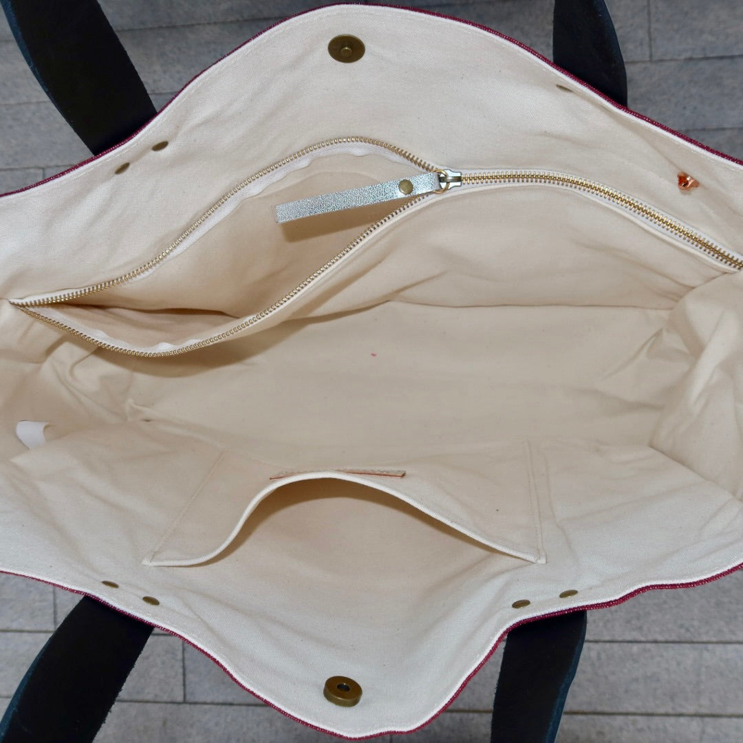 Lona de algodão e alças de couro genuíno.