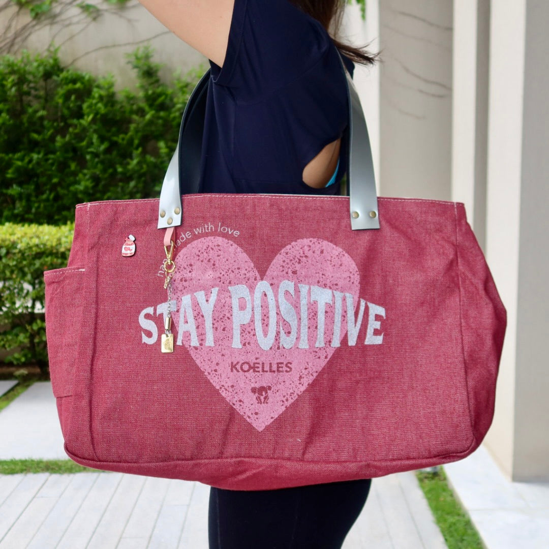Bolsa grande estilo sacola no modelo Wallow na cor vinho, com estampa em silk prata e rosa, e alças de couro legítimo em prata.