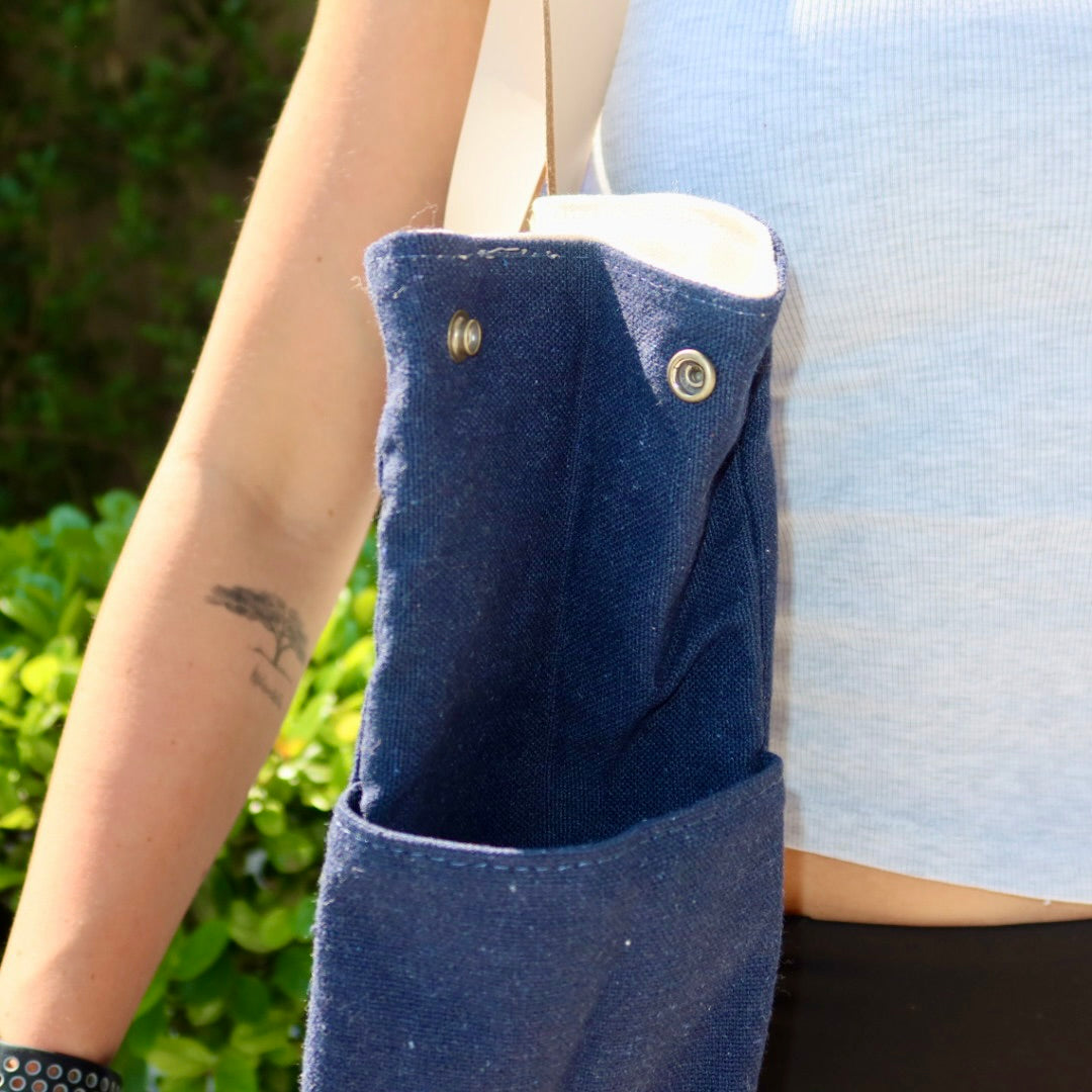 Contém 2 bolsos internos, um deles com fechamento em zíper, e um bolso externo lateral. Fechamento por botão de imã.