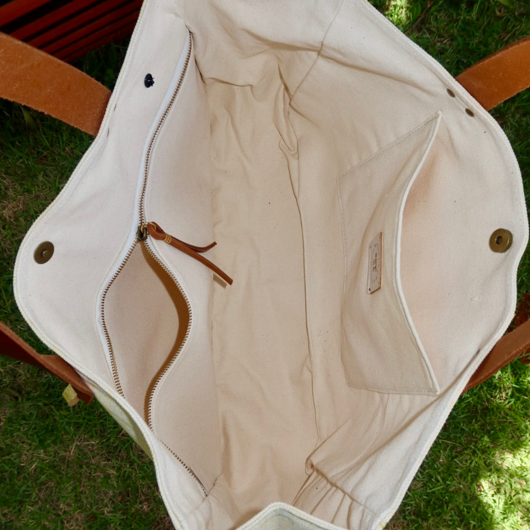 Lona de algodão e alças de couro genuíno.