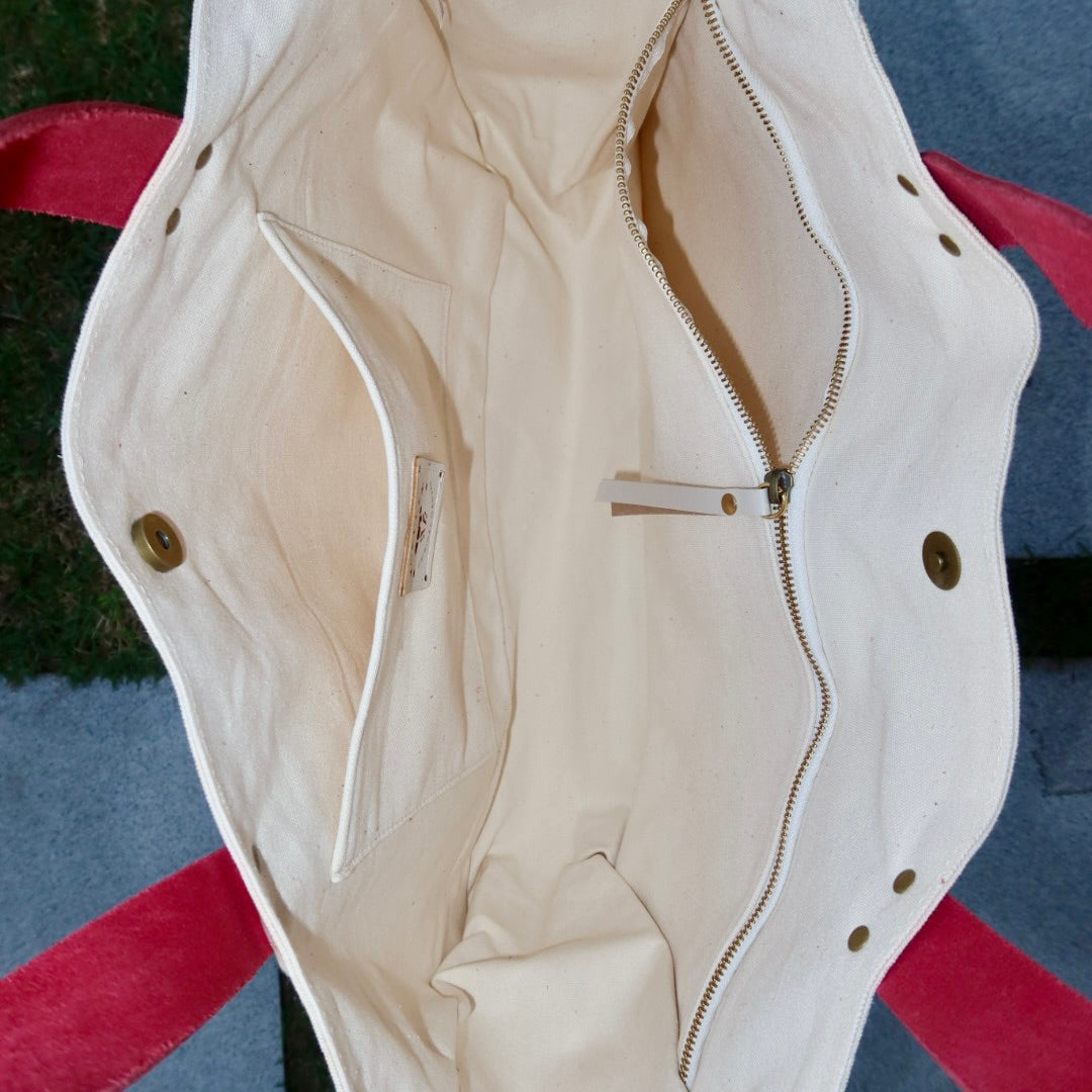 Lona de algodão e alças de couro genuíno.
