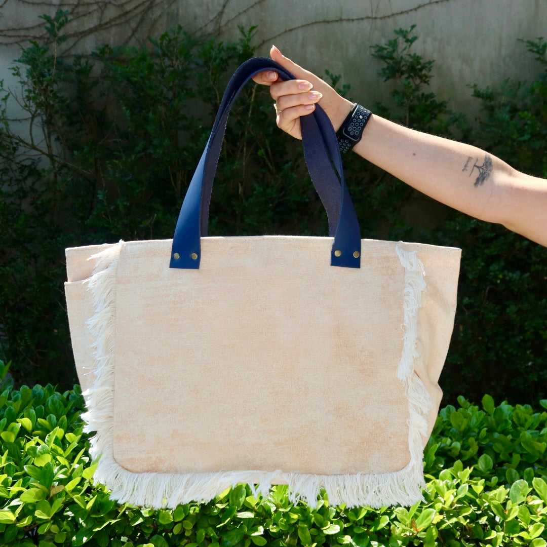 Bolsa Nuna Bege com Alças de Couro Marinho