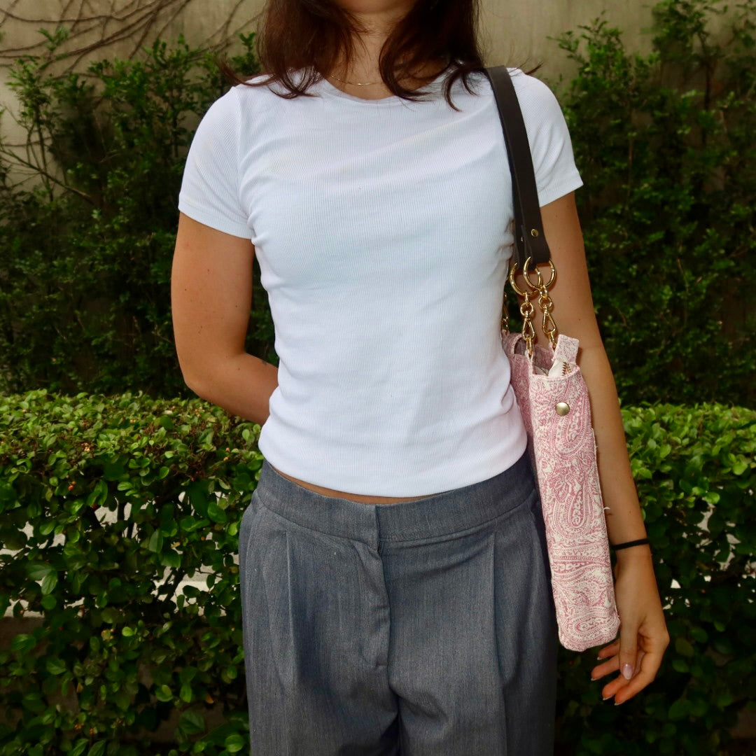 - Se necessário, lave na mão usando um pano com sabão neutro e água fria, sem molhar as alças e sem esfregar o tecido.