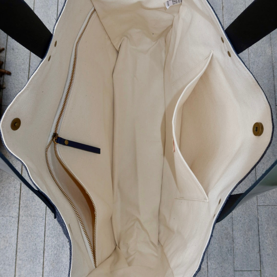 Contém 2 bolsos internos, um deles com fechamento em zíper, e um bolso externo lateral. Fechamento por botão de imã.