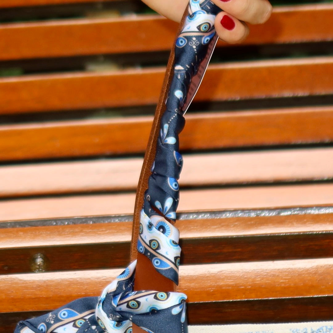 Bolsa Nuna Arabesque Azul com Alças de Couro Marrom