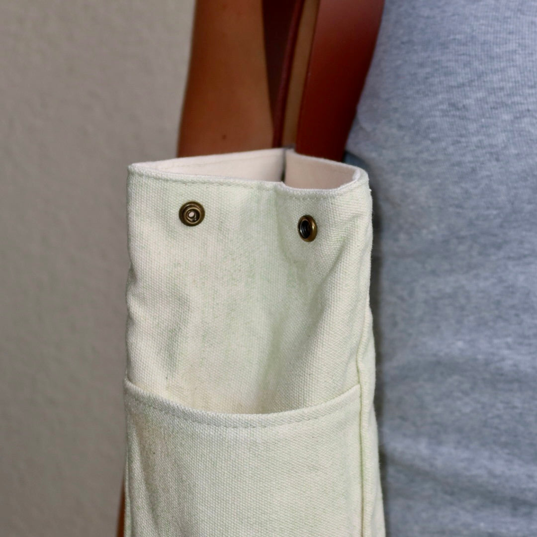 Contém 2 bolsos internos, um deles com fechamento em zíper, e um bolso externo lateral. Fechamento por botão de imã.