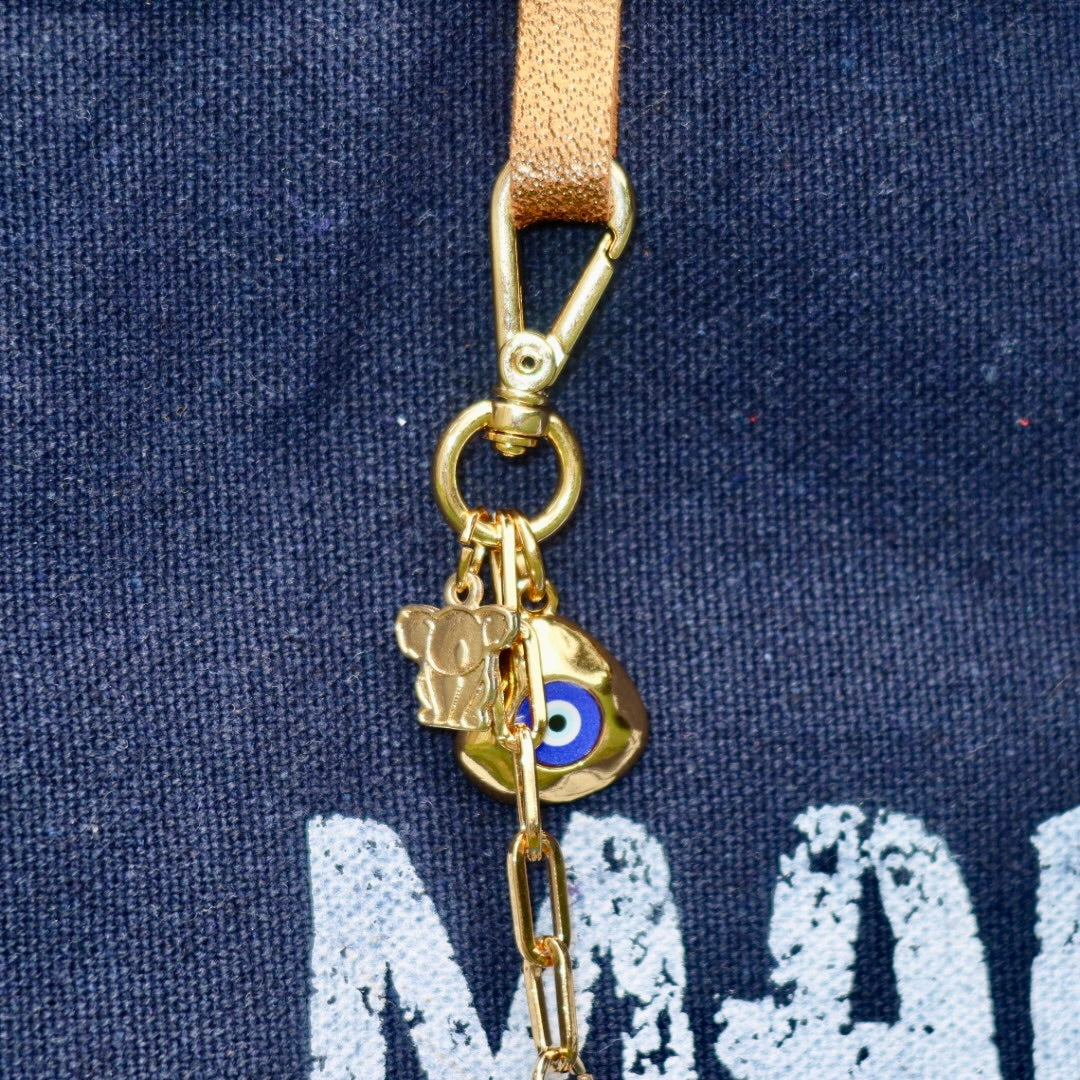 Bolsa Wallow Marinho com Alça de Couro Caramelo