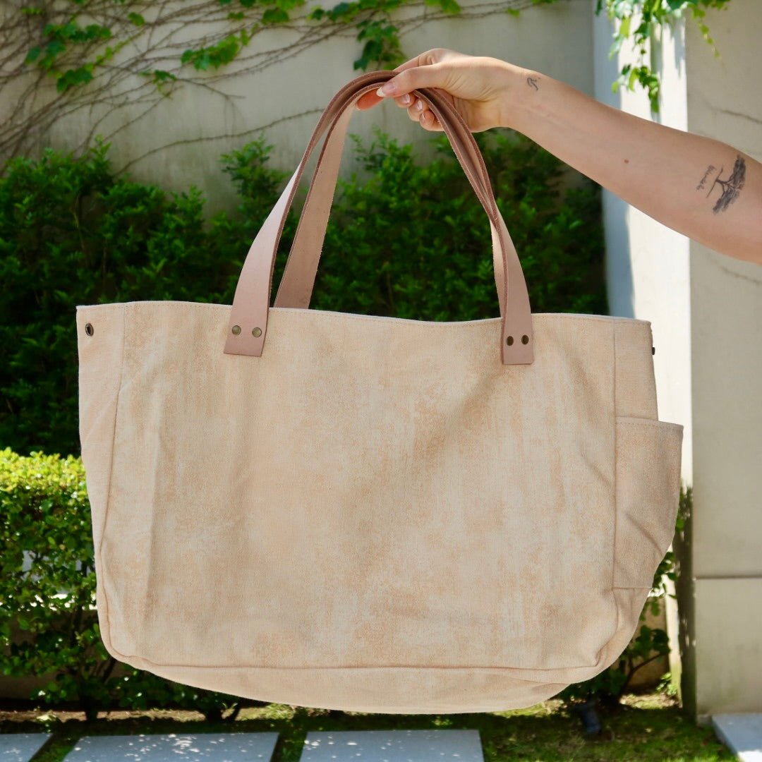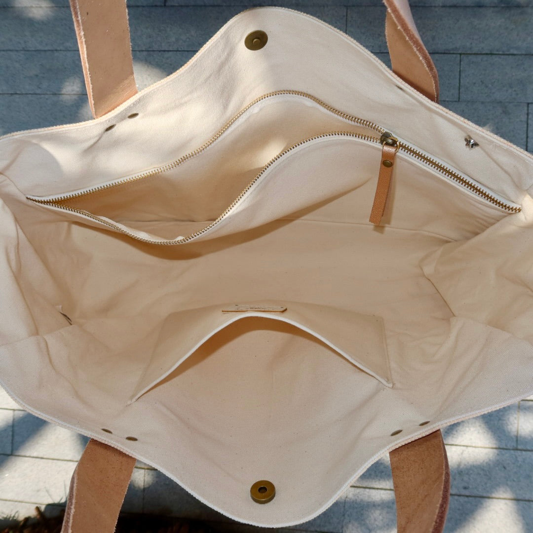 Lona de algodão e alças de couro genuíno.