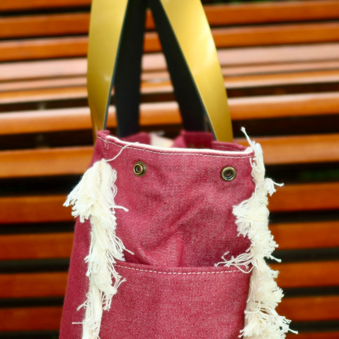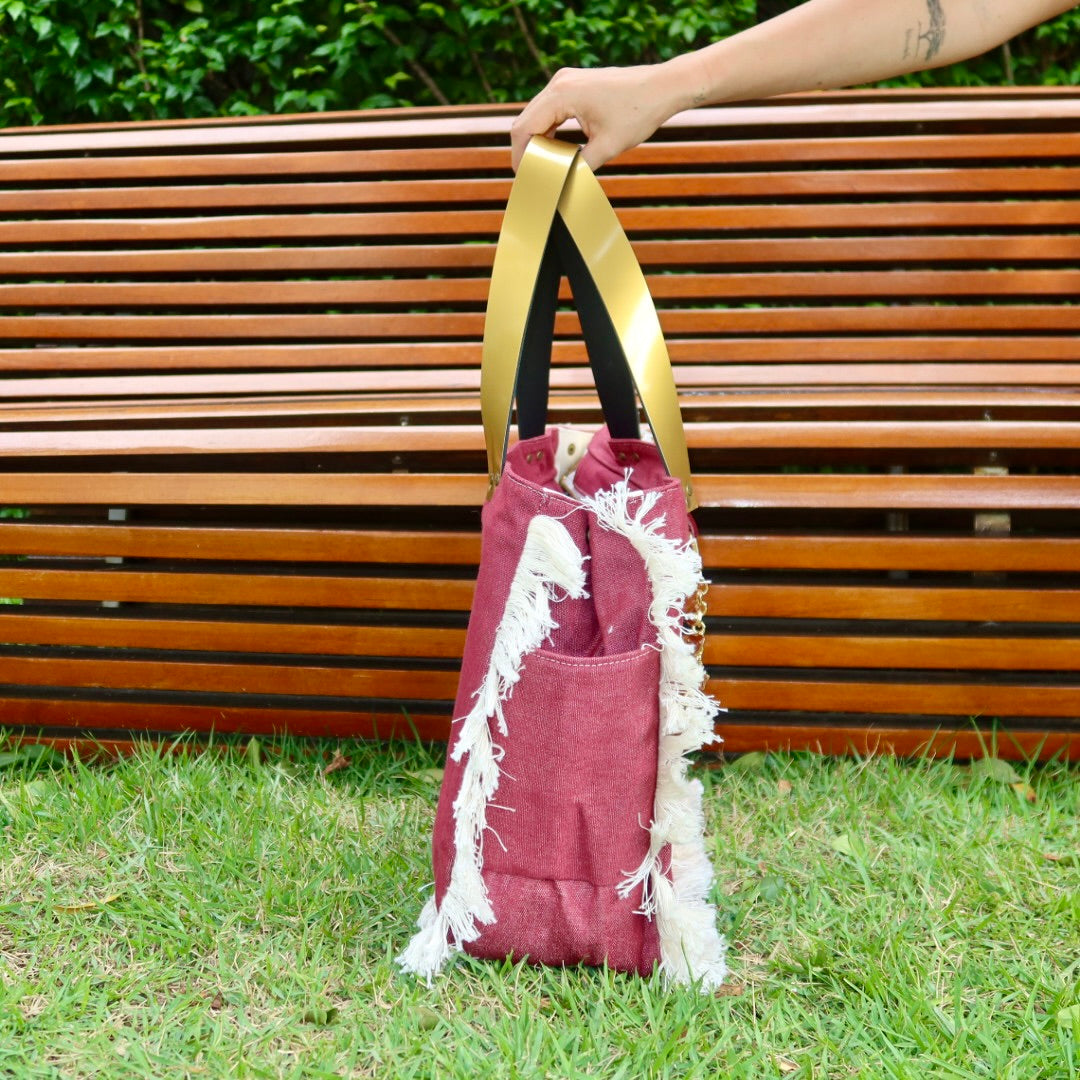 Bolsa Wallow Vinho com Alça de Couro Dourado com Zíper