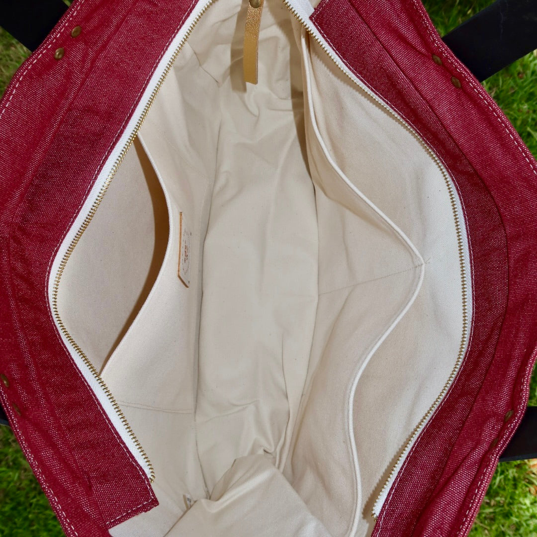 Contém 3 bolsos internos, e um bolso externo lateral. Fechamento em zíper.